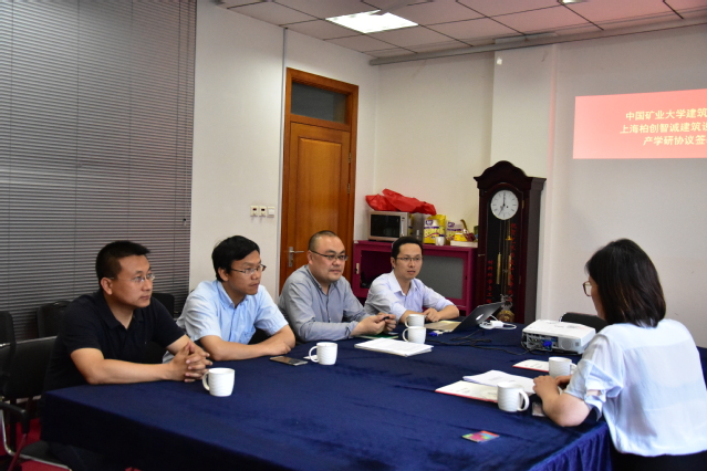 11点20分,当地下展厅实习生招聘会如火如荼进行时,设计学院副院长姚君、建筑系系主任张明皓、教授林祖锐、副教授姚刚同时在设计学院B302与上海柏创智诚建筑设计有限公司副总经理、研究院院长汪燕正式签署了产学研协议,以促进校企更进一步合作,实现双赢。
