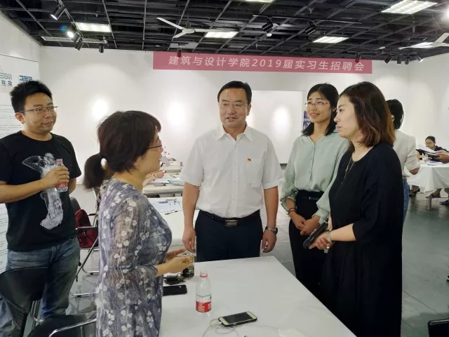 6月13日上午10点30分,建筑与设计学院于学院地下展厅举行了2019届实习生招聘会。此次招聘会由2019届毕业班辅导员陈文雯组织筹备,2019届毕业生积极参与。招聘会进行期间,院党委书记施永红、院长罗萍嘉、招就处副处长胡卫新、党委副书记范韶维、副院长冀朋元等领导前往招聘会现场了解情况,指导工作。