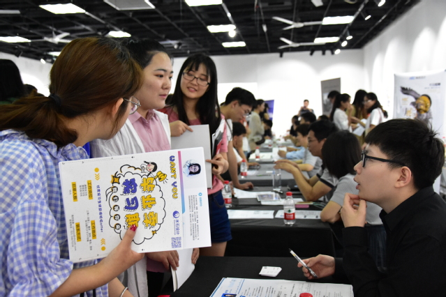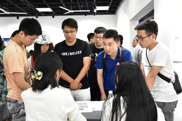 炎热高温不期而遇,企业求贤热情不减。上午10点,静立水边的建筑与设计学院迎来了15家招聘单位。参加招聘会的各单位的招聘需求与我校毕业生专业吻合度较高,涉及建筑学、城市规划、室内设计、景观设计、音乐学。地下展厅整齐的摆列着学院为各招聘单位准备的桌椅,大家准备好宣传架,静候学生。10点30分,学生陆续进入地下展厅,纷纷走到企业对应展位,主动向用人单位递交简历,进行面对面交流,积极推荐自己,希望得到单位的肯定。“我大二、大三时参加了……我的实习范围包括……”,一位女生自信陈述着。招聘会上,学生们积极投递咨询,单位负责人认真聆听,不时提问。不少学生当时就填写了相关登记表。招聘会进行期间,学院和学校招就处相关领导老师来到现场了解情况,并与部分用人单位展开交谈,就学生就业交流了意见和看法。