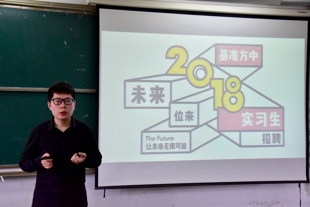 在公司宣讲环节,张经理介绍了公司的基本情况、发展历程、业务范围等内容,并对公司的2018年实习培训计划、职位需求以及对人才素质等方面的要求进行详细讲解,让同学们对实习岗位有了更加全面的了解。会议上,张经理就同学们关心的发展空间、薪资待遇等问题给予互动反馈解答。
