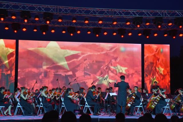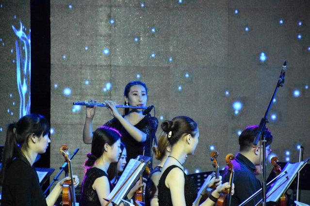 音乐会在交响曲《西域风情》悠扬、充满幻想的曲调中拉开帷幕。随后,一首《红旗颂》把观众拉回了新中国时期,它以宏伟庄严的歌唱性的旋律,热烈讴歌了伟大祖国蒸蒸日上的繁荣景象。然后,一首耳熟能详的民族经典曲目《梁祝》缓缓响起,音符间的缠绵浪漫把观众带入了梁山伯与祝英台的爱情故事,通过小提琴的独奏以及长笛、竖琴的交相辉映充分展现出来,妙不可言。