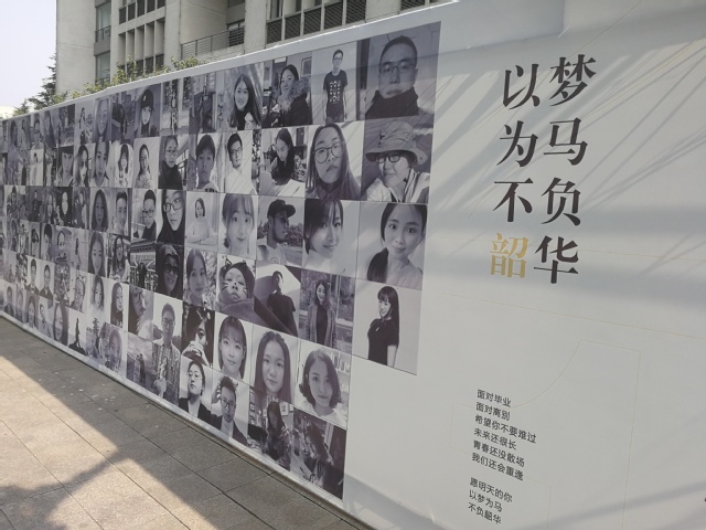 又逢毕业季,为送别毕业生,表达对毕业生的美好祝愿,6月4日,建筑与设计学院在学院楼前竖起以“以梦为马,不负韶华”为主题的2018届毕业生照片墙,将持续展览至毕业生离校。