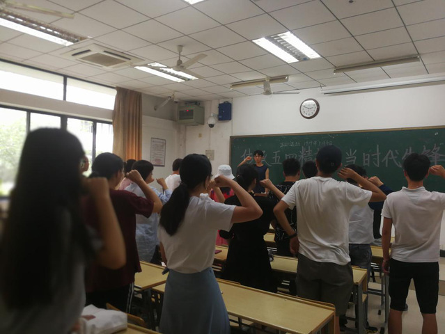 班会伊始,团支书李俊深入浅出的向同学们介绍了关于五四运动的背景、历史及精神。接着,同学们积极发言,互相交流、分享了一些发生在五四运动期间的感人事迹并发表了自己的看法,大家纷纷表示要学习五四青年们除旧立新的胆识和魄力,接过先辈传递到青年手上的火炬,用肩挑起时代的责任。“我们中国青年不会是垮掉的一代,我们会用自己的行动去彰显自己的责任和担当,并从现在开始努力学习,积极参加社会实践活动,为今后报效祖国打下基础”,一位同学这样说,“我们会真正做到‘为天地立心,为生民立命,为往圣继绝学,为万世开太平’。”最后,建筑17-2班全体成员高举右手宣誓,重温了当年的热血青春铸就的铮铮誓言。