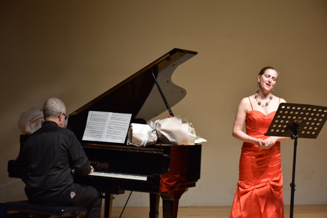 为了提高设计学院学生们的艺术实践能力,提升学生的艺术素质和综合素养,5月19日晚上7点,建筑与设计学院于建筑与设计学院报告厅举办了加拿大女中音歌唱家Patricia Green独唱音乐会,女中音歌唱家Patricia Green教授及钢琴家Hess John Orley教授出席并参加了此次音乐会,设计学院音乐系系主任刘振老师和音乐系部分师生共同聆听了此次演出。