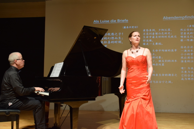 Green Patricia Dawn教授毕业于美国皮博迪音乐学院,是加拿大当代活跃在国际舞台上的女中音歌唱家;Hess John Orley教授则现任教于加拿大韦仕敦大学音乐学院,多年来长期从事钢琴教学和钢琴艺术指导工作。演出分为上下两场,共10项曲目,女中音歌唱家Patricia Green演唱了《在寂静的森林里》等多首加拿大代表歌曲,其充满了丰富感情的表演和美妙的嗓音震撼了全场,歌声与钢琴的融合,无扩音器的过滤,纯正的加拿大嗓音,时而热情,时而轻柔,全场观众都确切的感受到了歌曲所表达的感情。