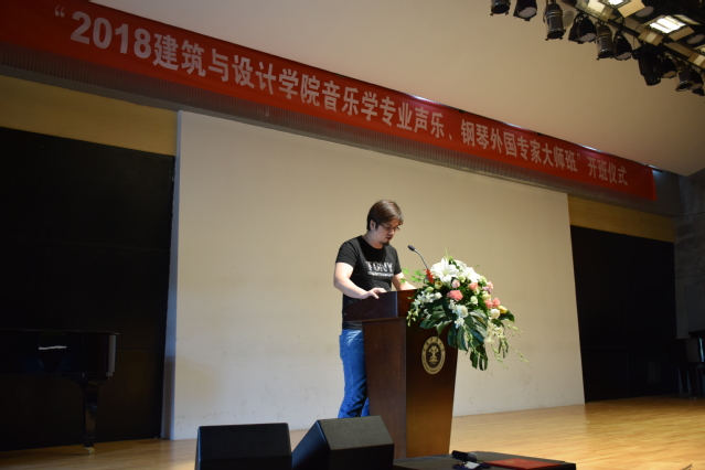 接着,孙良副院长致辞。孙良副院长说:很荣幸、很开心能够请到两位教授到音乐系给同学们进行大师班,希望同学们能够珍惜这次好的学习机会,希望通过不停地国际化交流,能够为音乐学的发展打下更好地基础。希望同学们通过这一系列交流能够提高自己的能力。