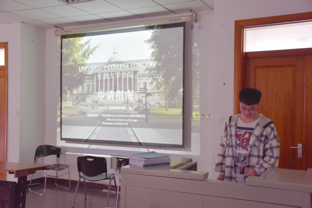 交流会伊始,收到伦敦大学offer的卢鑫向大家介绍了他的申请经验,他从出国材料的准备(个人简历、作品集等)、渠道获得、学校联系、时间安排等方面作了详细的交流。卢鑫的讲话十分幽默,在欢笑中带给了同学们许多干货。接着,收到的密歇根大学offer的路悦讲述了美国研究生和英国一年制研究生及两年制研究生的优劣势,她重点介绍了语言考试的重要性和方法,让同学们了解到英国一年制研究生在国内的现状。之后,收到普渡大学offer的韩果均、收到谢菲尔德大学offer的李彤宇、收到爱丁堡大学offer的刘歆分别从不同角度向同学们解读了学校联系、作品集制作以及、时间安排等注意事项。