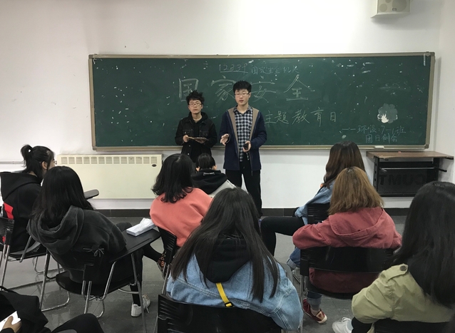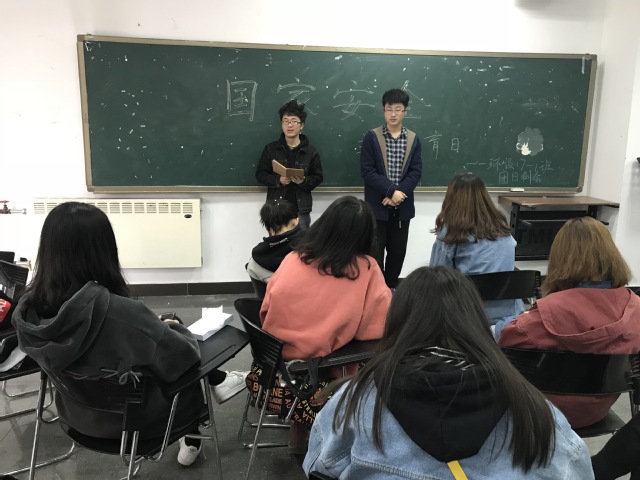4月13日下午1:30,为响应学校培养和增强团员青年自觉维护国家安全的责任感与使命感的号召,建筑与设计学院环境设计1班在学院楼A306召开了以“国家安全教育日”为主题的班会,团支书肖华钦同学支持本次班会,环境设计1班全体同学参加了此次班会.