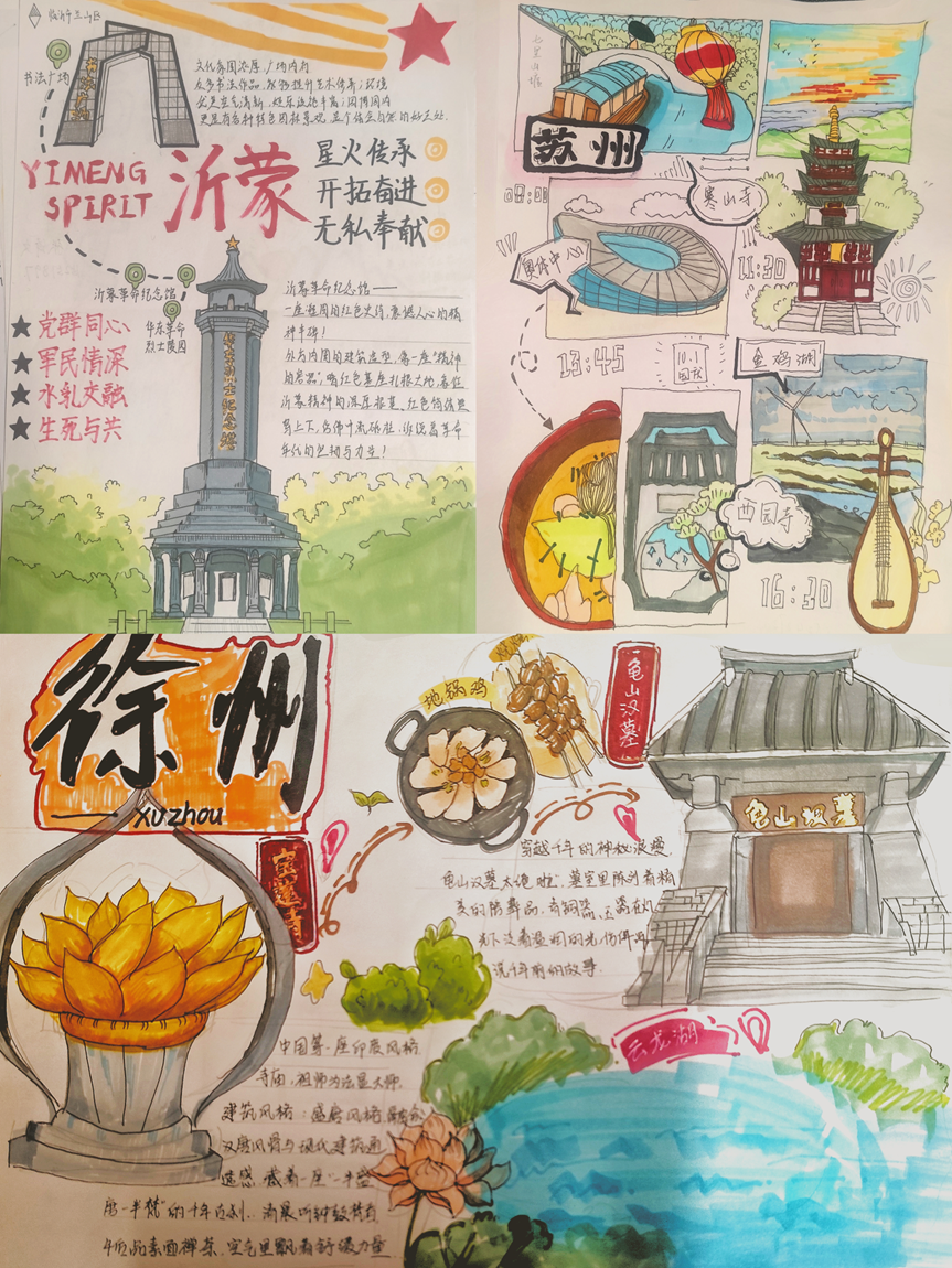 本次活动以“旅途”主题,参与者以“手绘+文字”的双重形式,生动记录国庆旅途上的所见所感,包括风景导览、美食介绍、非遗文化等。每幅作品均细节鲜活、情感真挚。