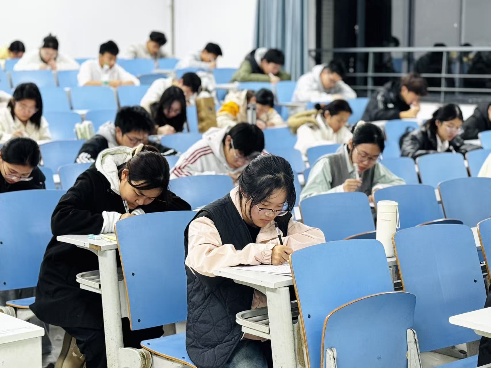 11月28日晚,建筑与设计学院在博学楼教室组织全体大一学生开展大学英语四级模拟考试。学院学生会学习部负责考务组织工作,提前布置考场、安排座位,并明确人员分工。2025级兼职辅导员要怡同参与监考。