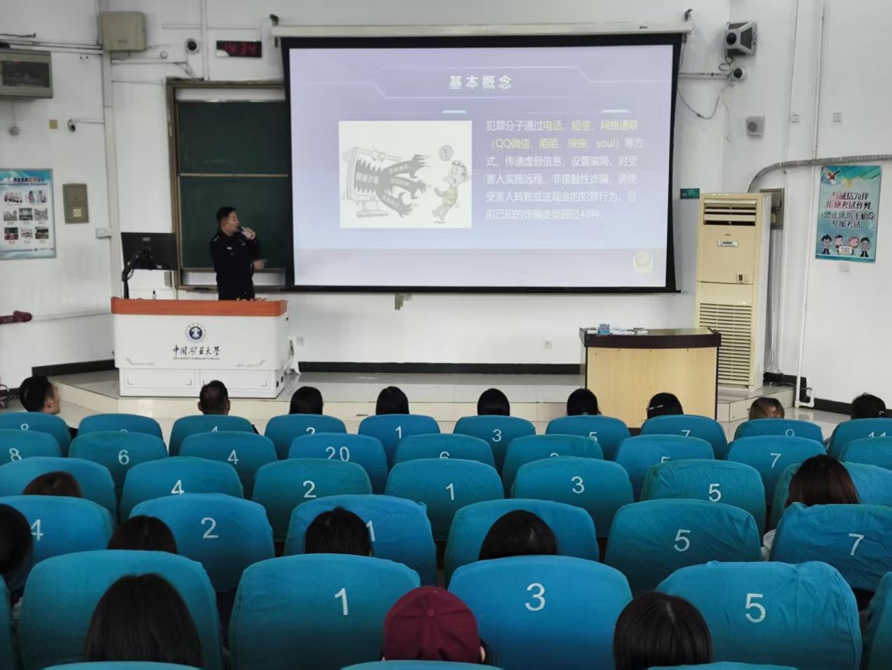 会上,杜警官结合真实案例,深入浅出地普及了各类电信网络诈骗的常见手法,对刷单返利、冒充客服、虚假贷款等典型骗局进行了细致剖析。现场设置了互动有奖问答环节,同学们积极参与,现场气氛热烈。
