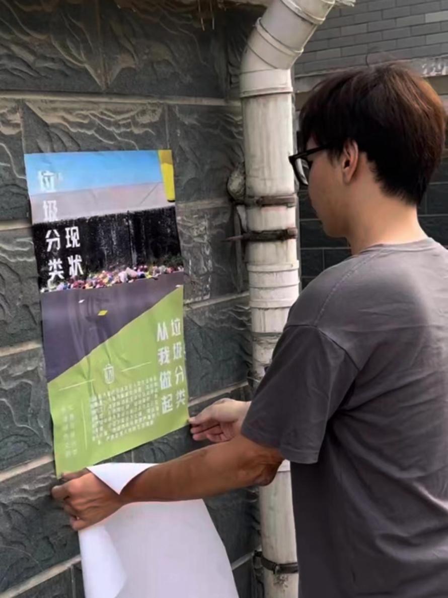 成员于欣彤、葛宇涛分别制作垃圾分类调查表,对居民进行线上线下垃圾分类知识调查;成员袁梦瑶、李鑫豪、何安彤制作垃圾分类宣传海报,张延昊、孙暄皓、白雪琛制作垃圾分类知识普及海报,并在居民区大街小巷张贴,对居民进行知识普及宣传;成员王玉轩转发垃圾分类相关学习网站,引导大家学习垃圾分类知识;团队队员用视频形式记录下实践宣传过程,队员袁梦瑶、徐长猛对视频剪辑并发布,进行网络宣传。