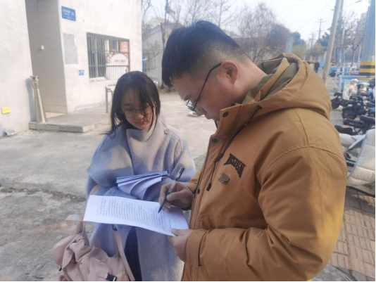 在为期一个月的实践中,团队先后参与多部门协调会,与专家探讨更新技术路径,协助完成调研底图绘制与问卷设计,为数据采集筑牢基础。针对13 个部门提供的基础资料,队员们系统整合形成底图数据库;面对 1938 份有效居民问卷,通过专业软件分析梳理出基础设施、公共服务、环境整治等核心诉求。此外,团队多次深入街区踏勘,记录路面破损、管线杂乱等突出问题,用测距仪丈量公共空间的尺度,与居民、商户面对面交流,精准把握民生期待。王丽在走访笔记中写道:“看到居民们对改善居住环境的期待,我感受到这次项目能切实地改善民生,对自身的专业又有了更深的理解。”