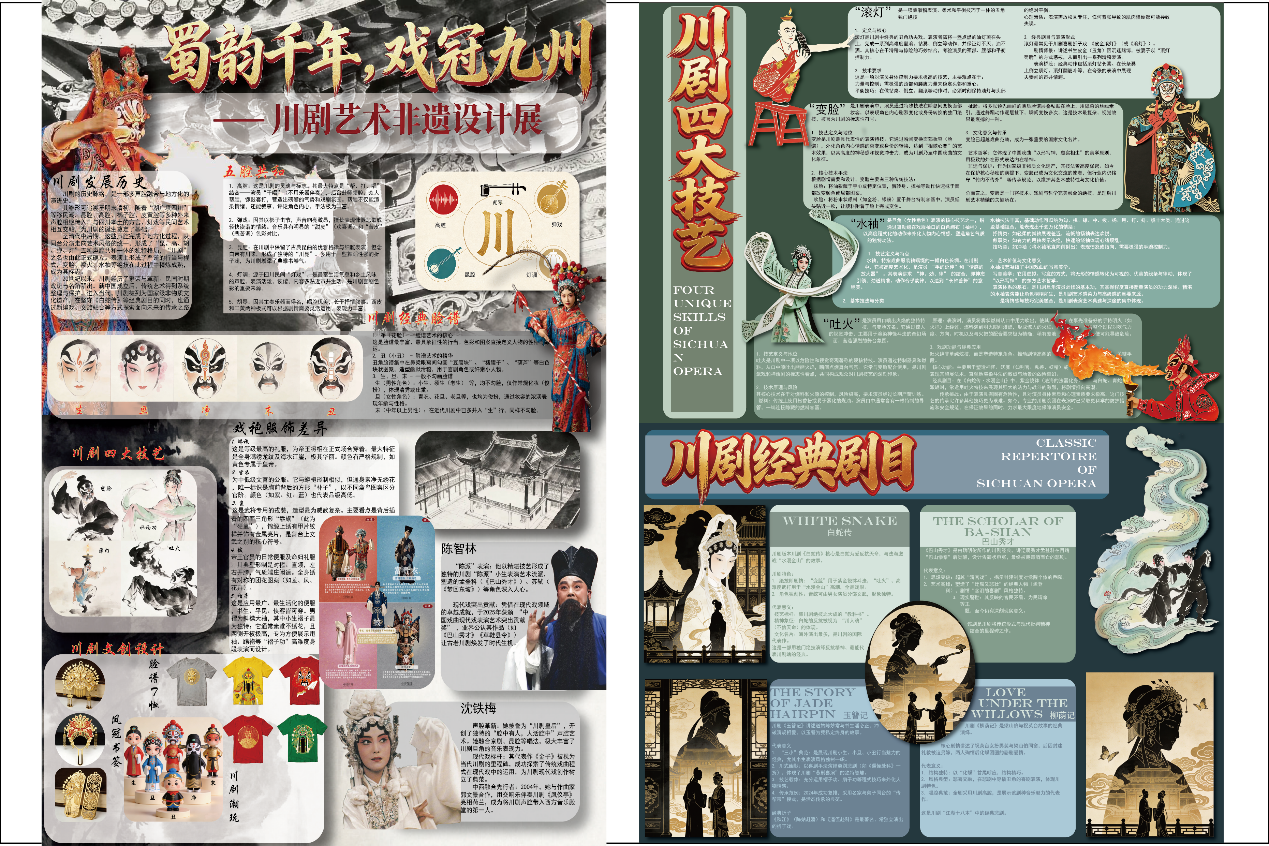 团队分工协同高效,稳步推进全流程工作。队员通过文献检索、网络溯源深挖非遗历史渊源、技艺特点与文化内涵,筑牢内容根基;创意文案组打磨鲜活叙事,提升非遗故事感染力;设计组打造五对主题展板,以图文并茂形式系统呈现非遗发展脉络;技术组拍摄剪辑六个系列短视频,涵盖技艺解析、文化解读等内容,生动诠释非遗当代价值;运营组搭建多平台传播矩阵,助力非遗文化广泛触达大众。