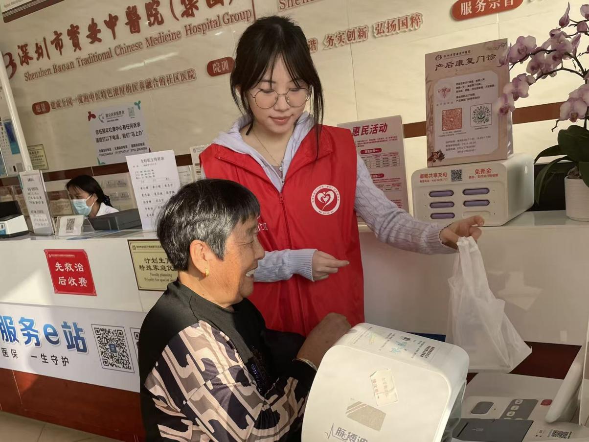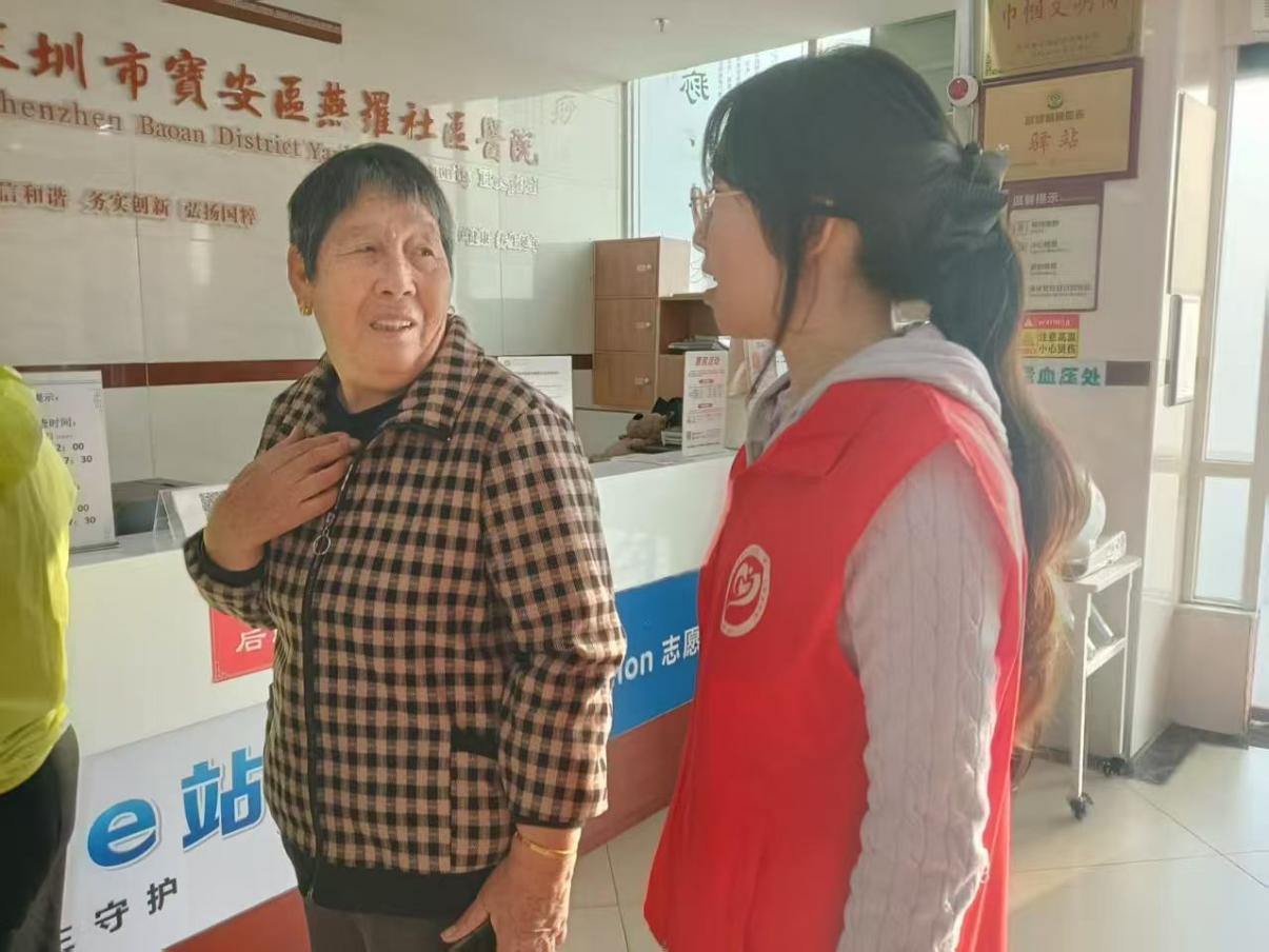 在深圳颐年中医院,队员协助医护人员为老人开展免费体检,引导登记、测量血压,细心搀扶、耐心陪伴。老人们对朝气蓬勃的志愿者十分欢喜,主动打招呼、聊家常。队员们在服务中真切感受到老人们对陪伴的渴望,也深入了解医养结合服务的发展现状。