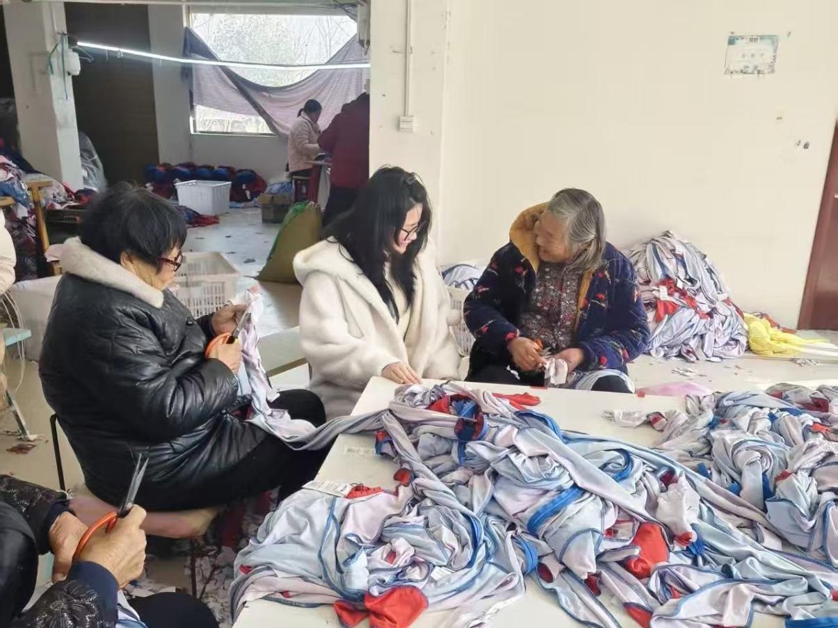 在信阳乡村纺织厂,队员们与从事手工劳作的老人亲切交谈。这里的老人大多是子女不在身边的空巢老人,做手工活既为排解孤独,也补贴家用。见到青年志愿者,老人们格外开心,拉着队员问年纪、拉家常,现场温情满满。