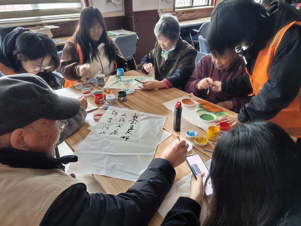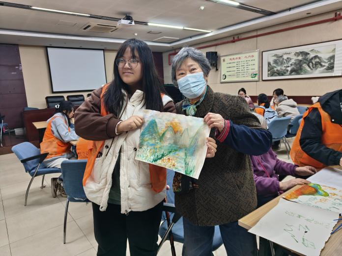 志愿者们分为两组,分别陪同老人们进行绘画书法和折纸活动。老人们在志愿者的陪伴下,共同创作出一幅幅色彩斑斓的画作和一个个精美的折纸作品。在活动过程中,志愿者们积极和老人聊天交流,关心他们的身体健康状况、生活环境,了解他们的日常休闲运动等。志愿者们的付出得到了老人们的认可和感谢,他们用实际行动传递了关爱与温暖。