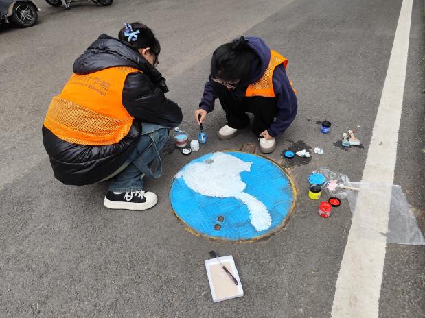 10月24日上午,建筑与设计学院青年之光志愿者协会组织志愿者前往博济养老院,开展以“彩绘井盖,情暖重阳”为主题的井盖绘画志愿服务活动。本次活动共有9名志愿者参与,完成了4处井盖的创意彩绘。