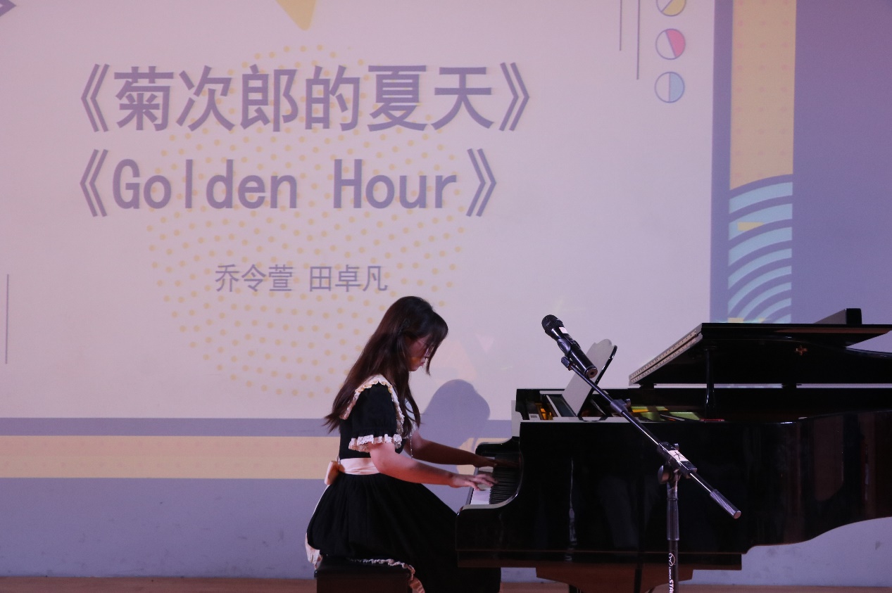 接下来的节目异彩纷呈,同学们表演了歌曲、舞蹈、朗诵、小品等,充分展示了同学们的多才多艺的艺术基础。原创歌曲《心动》展示了歌手柔美的声调与乐器伴奏同学的激情旋律,引发阵阵欢呼;《菊次郎的夏天》、《Golden Hour》和《爱的协奏曲》等钢琴演奏音韵优美,令人陶醉其中;舞蹈《家有儿女》《失恋阵线联盟》洋溢着同学们的活力和笑容,《咏春》、《Queencard》则是展现了国风与现代舞风的碰撞;小品《虎父无犬子》《开不了口》,在引人捧腹大笑之余,也设计了暖心的结局,让人体会到家庭的温暖。