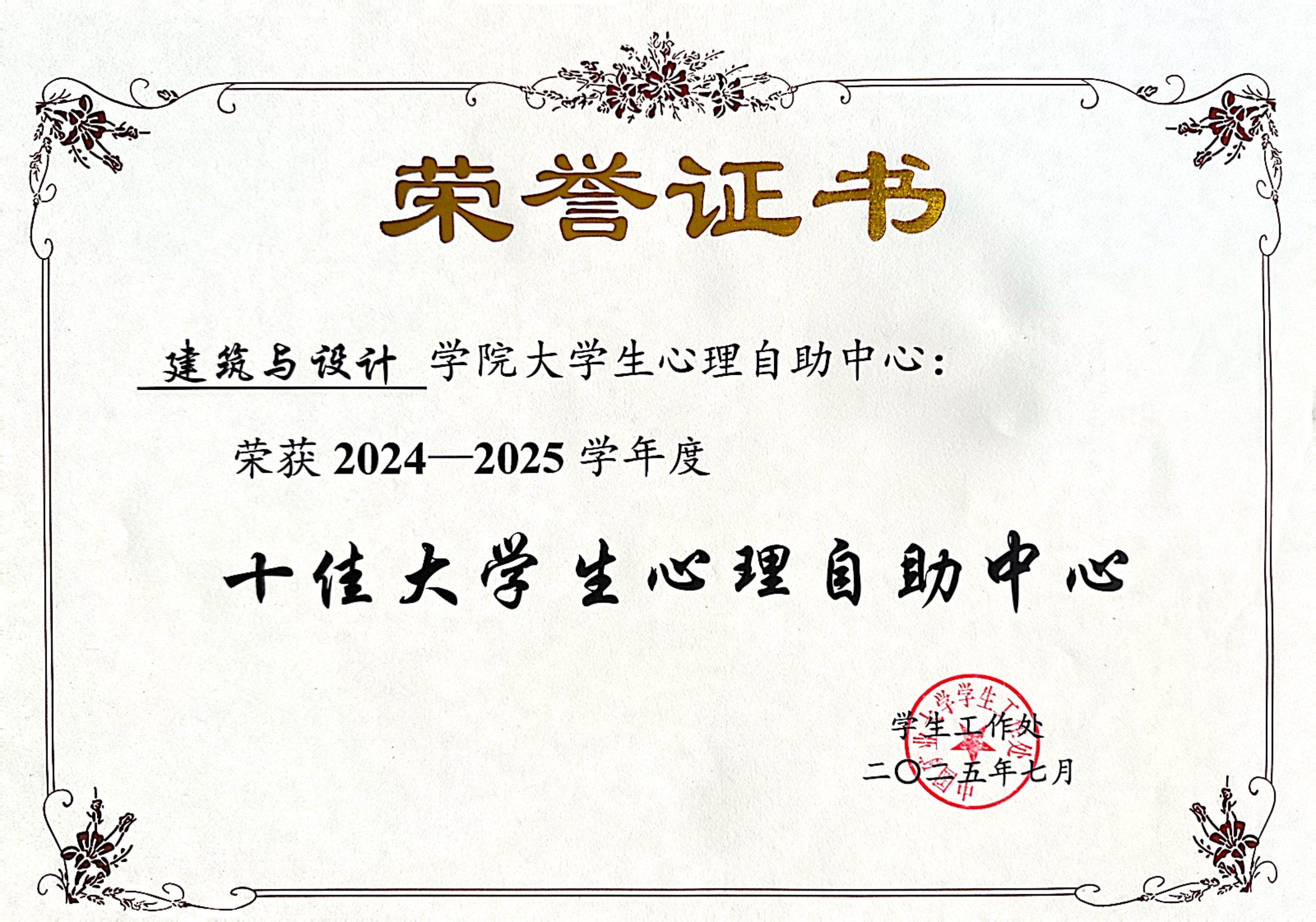 2024-2025学年度十佳大学生心里自助中心