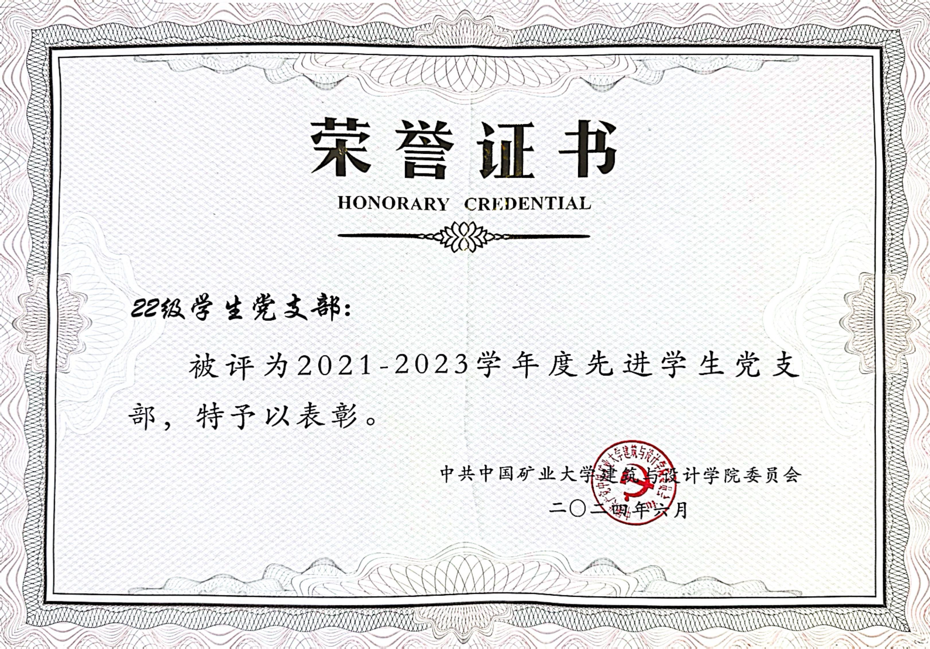 22级学生党支部获2021-2023学年年度先进学生党支部